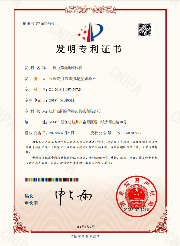 杭州富陽(yáng)康華制藥機(jī)械有限公司(初創(chuàng)于2001年, 2004年后更名為:杭州富陽(yáng)康華機(jī)械設(shè)備廠),是集產(chǎn)科研一體化的中藥材前處理及飲片加工設(shè)備制造企業(yè)。公司秉承以產(chǎn)品質(zhì)量為基礎(chǔ)、客戶服務(wù)為向?qū)?、科研?chuàng)新為后勁的宗旨,在企業(yè)高速發(fā)展的同時(shí),著力打造新產(chǎn)品研發(fā)中心,以開發(fā)現(xiàn)代、新穎設(shè)備為重任,確保產(chǎn)品立于行業(yè)先進(jìn)行列,企業(yè)已擁有70余項(xiàng)專利...